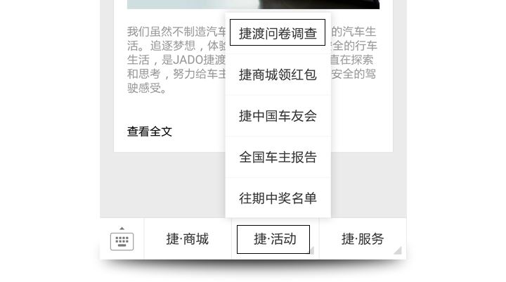 2016年03月29日~2016年04月06日 【參與方式】 關(guān)注并打開公眾號[捷渡中國] 點(diǎn)擊[捷·活動(dòng)]--[捷渡問卷調(diào)查] 即可參與問卷調(diào)查 問卷調(diào)查結(jié)束后 將有1次抽獎(jiǎng)機(jī)會