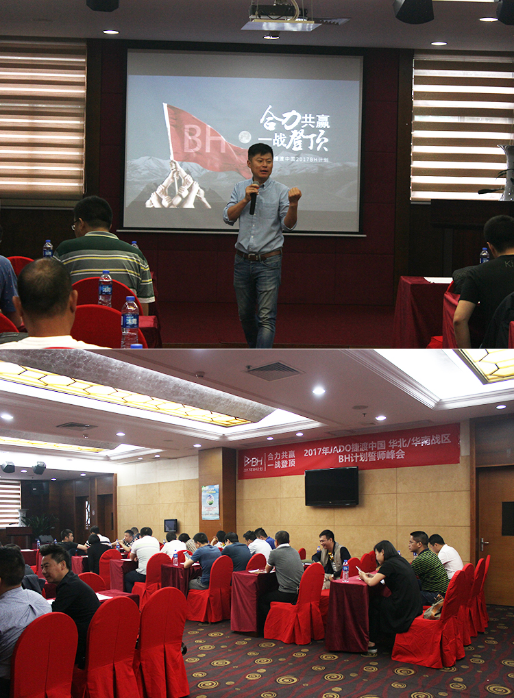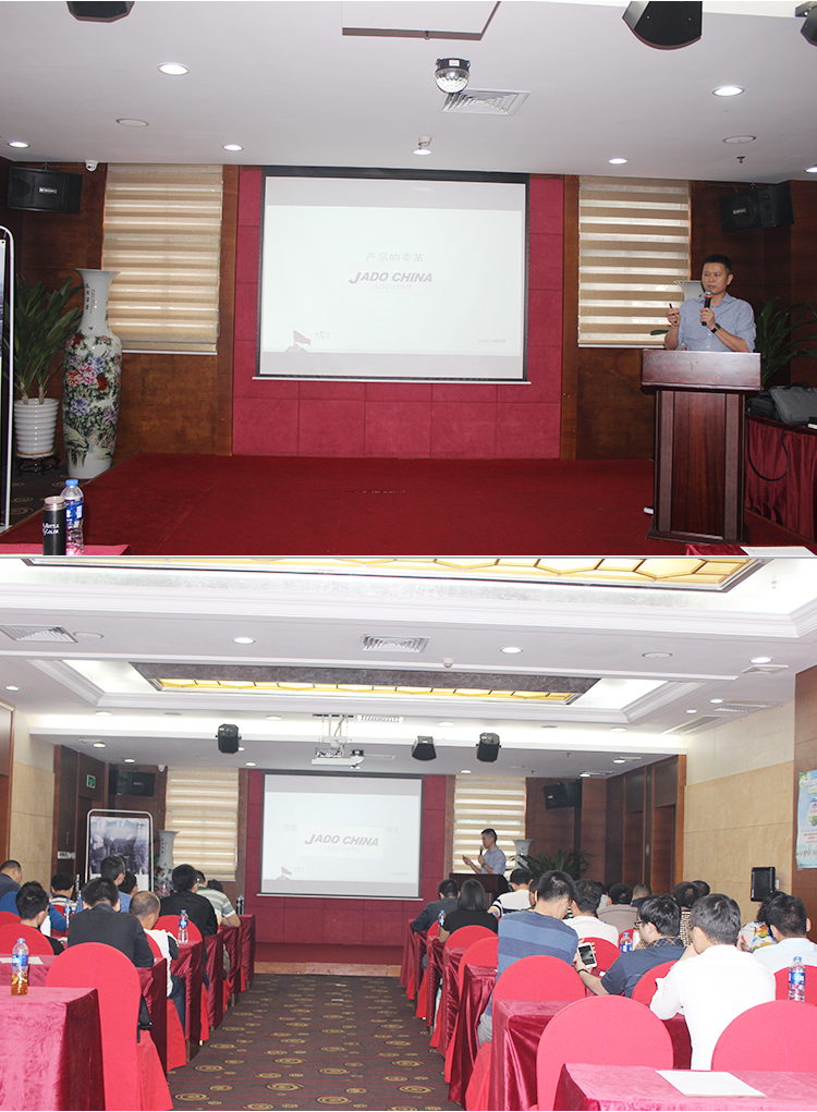 2017年4月27日,主題為“合力共贏,一戰(zhàn)登頂”的JADO捷渡中國(guó)2017華南、華北戰(zhàn)區(qū)決戰(zhàn)終端誓師峰會(huì)在中國(guó)·深圳民都大酒店隆重舉行。