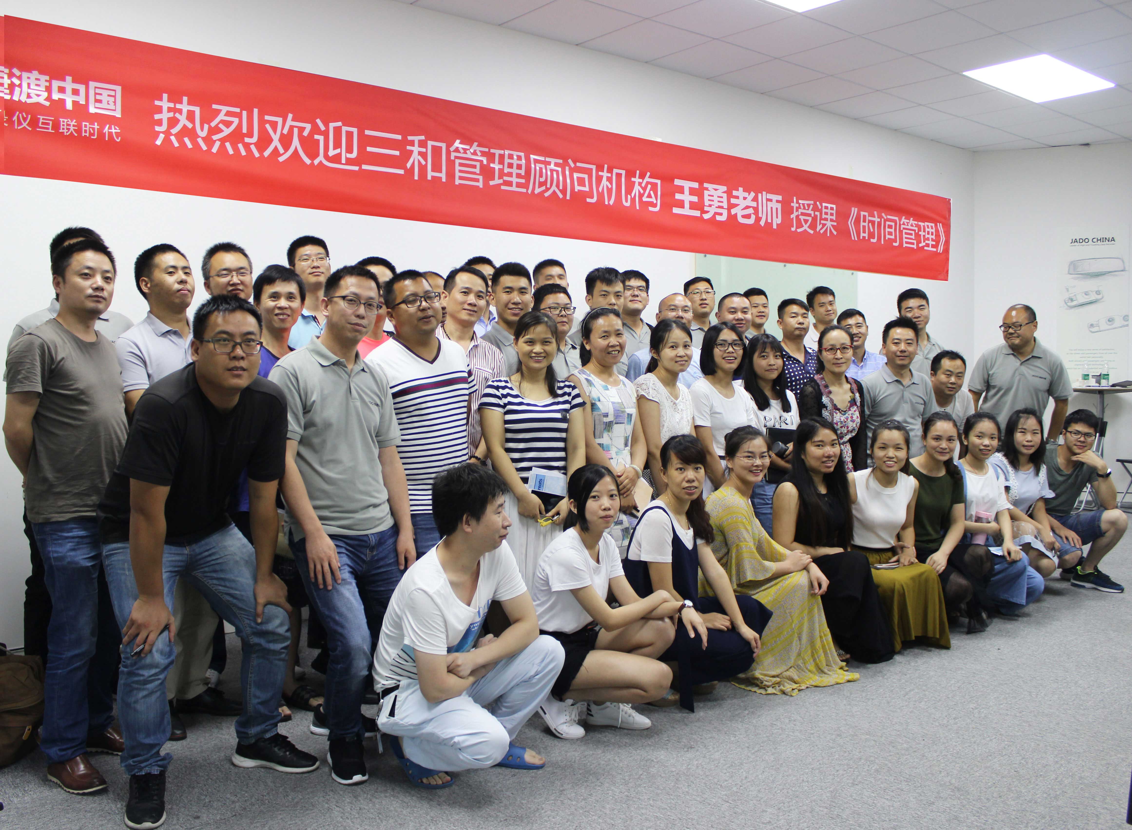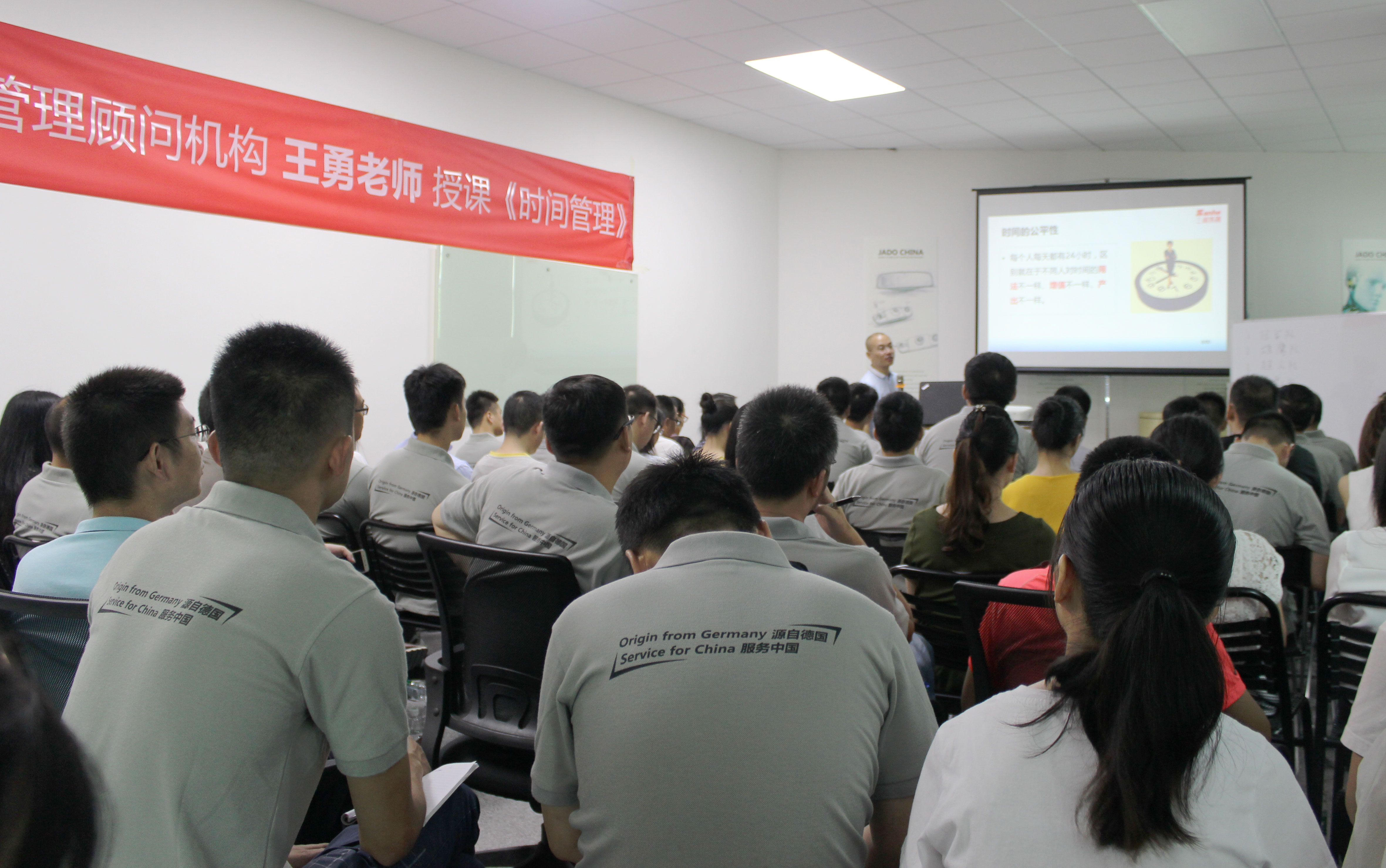 2017年7月2日,JADO捷渡智能(中國(guó))研修院在深圳生產(chǎn)基地多功能會(huì)議室,邀請(qǐng)三和管理顧問機(jī)構(gòu)王勇老師,對(duì)JADO捷渡智能(中國(guó))研修院人員進(jìn)行第一節(jié)企業(yè)內(nèi)訓(xùn)課程《時(shí)間管理》,并通過直播平臺(tái)在線直播。