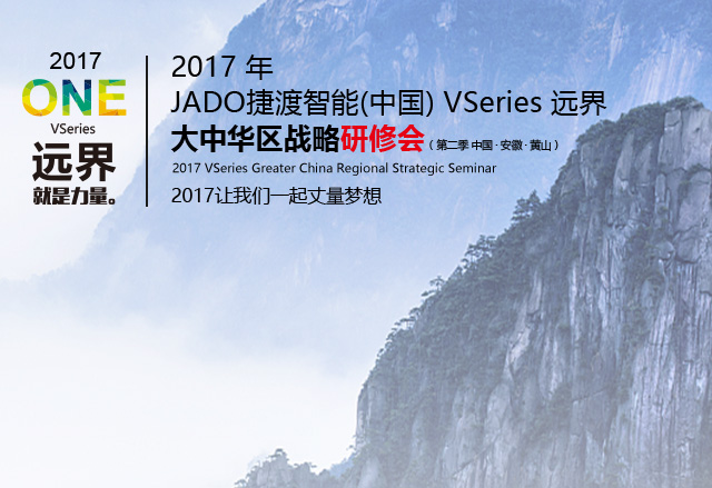 2017年10月15日,以“讓我們一起丈量夢想 ”為主題的2017年JADO捷渡智能(中國)VSeries遠界大中華區(qū)戰(zhàn)略研修會在安徽黃山溫泉酒店隆重舉行。