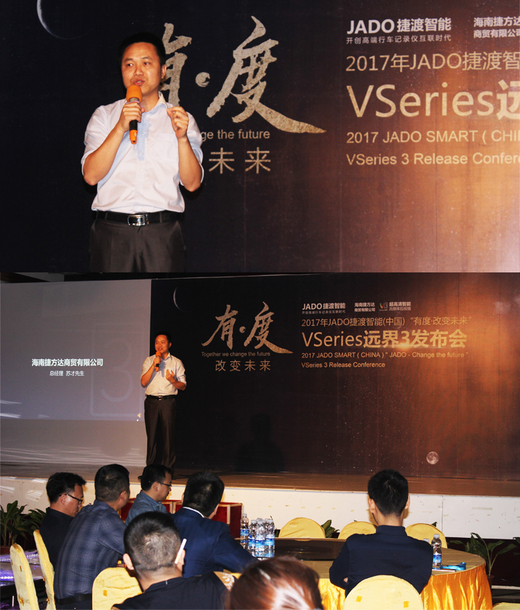 “不忘初心,七年磨一劍!我們迎來了VSeries遠(yuǎn)界3超高清智能流媒體后視鏡”,JADO捷渡智能(中國)董事長王杰先生上臺(tái)為大家總結(jié)2017年JADO捷渡智能(中國)所取得的成績,以及2018年JADO捷渡智能(中國)將進(jìn)一步開啟“資本化”和“國際化”。他表示:非常感謝海南省區(qū)各戰(zhàn)略合作伙伴的蒞臨,期待2018大家攜手共創(chuàng)美好未來。