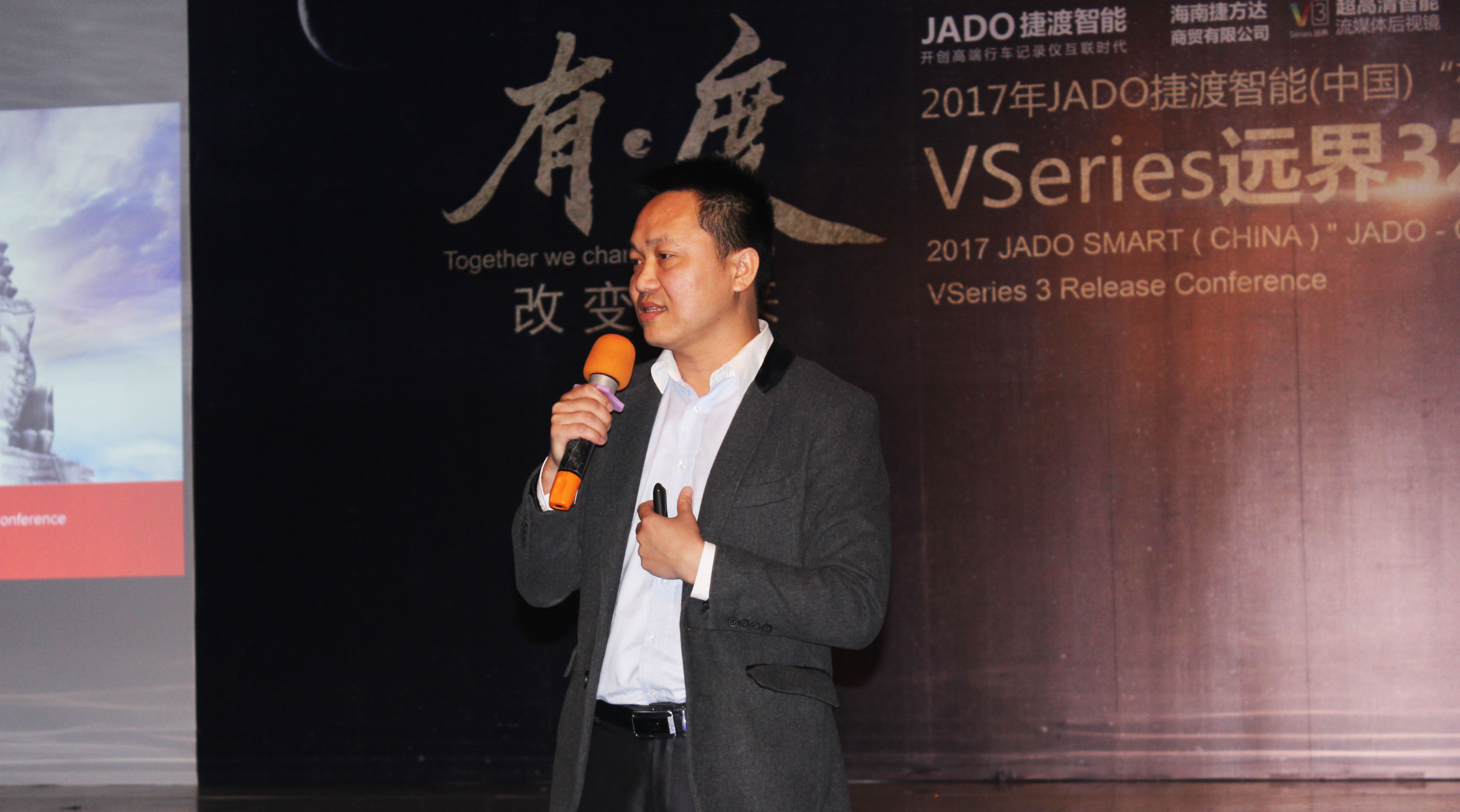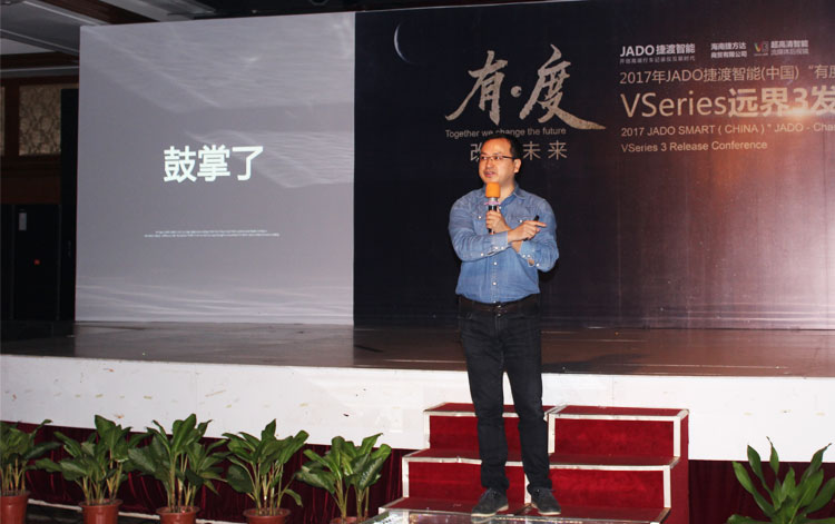 JADO捷渡智能(中國)產(chǎn)品總監(jiān)吳樂明先生上臺(tái)致辭,重點(diǎn)為大家闡述了 VSeries遠(yuǎn)界系列產(chǎn)品的設(shè)計(jì)理念。前裝與后裝并存、專業(yè)與智能的完美融合,VSeries遠(yuǎn)界3給了大家一個(gè)最佳的選擇。