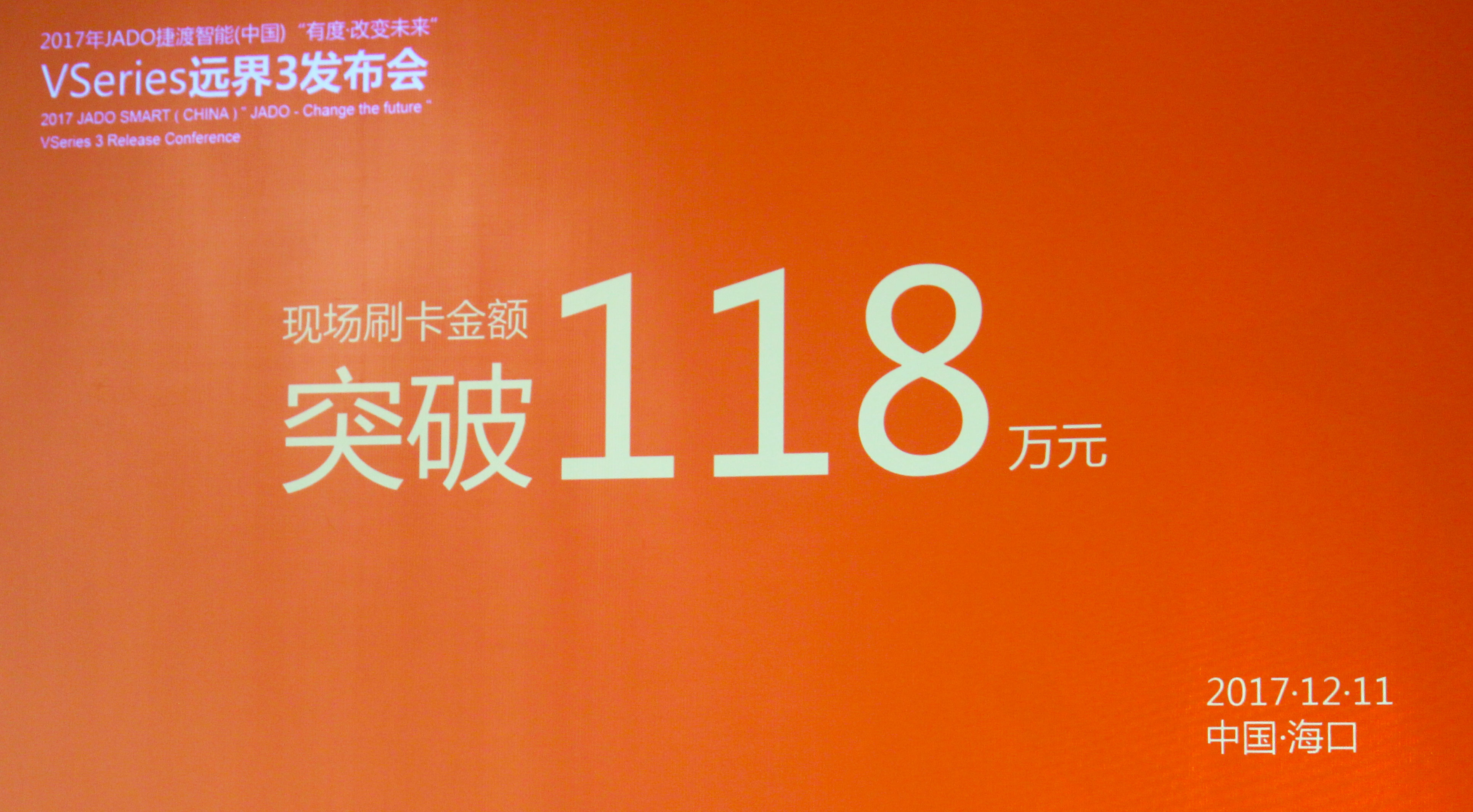 2017年12月11日,以“有·度——改變未來”為主題的“JADO捷渡智能(中國)VSeries遠(yuǎn)界3超高清智能流媒體后視鏡發(fā)布會(huì)”在??谥秀y海航國商酒店完美落幕。本次活動(dòng)由JADO捷渡智能(中國)海南省區(qū)戰(zhàn)略合作伙伴海南捷方達(dá)商貿(mào)有限公司主辦。
