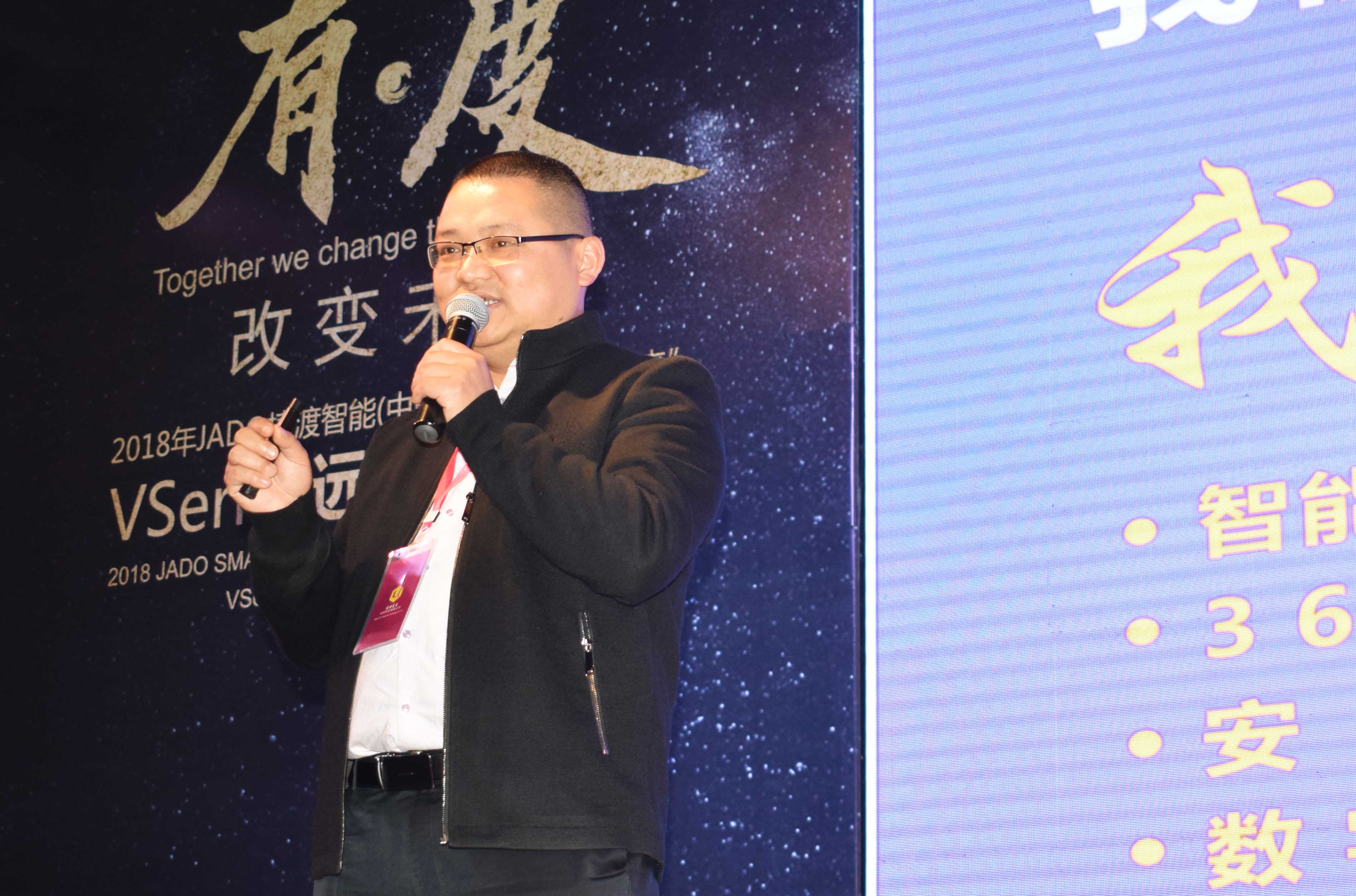 隨后,JADO捷渡智能(中國(guó))營(yíng)銷中心總經(jīng)理陳問文先生從大企業(yè)、全渠道、新產(chǎn)品、新形象、品牌營(yíng)銷推廣五大方面深入剖析新一年的發(fā)展規(guī)劃,2018年將作為“營(yíng)銷軍事化管理強(qiáng)化年”,五大戰(zhàn)區(qū)強(qiáng)力主導(dǎo)幫助終端渠道快速成長(zhǎng)。
