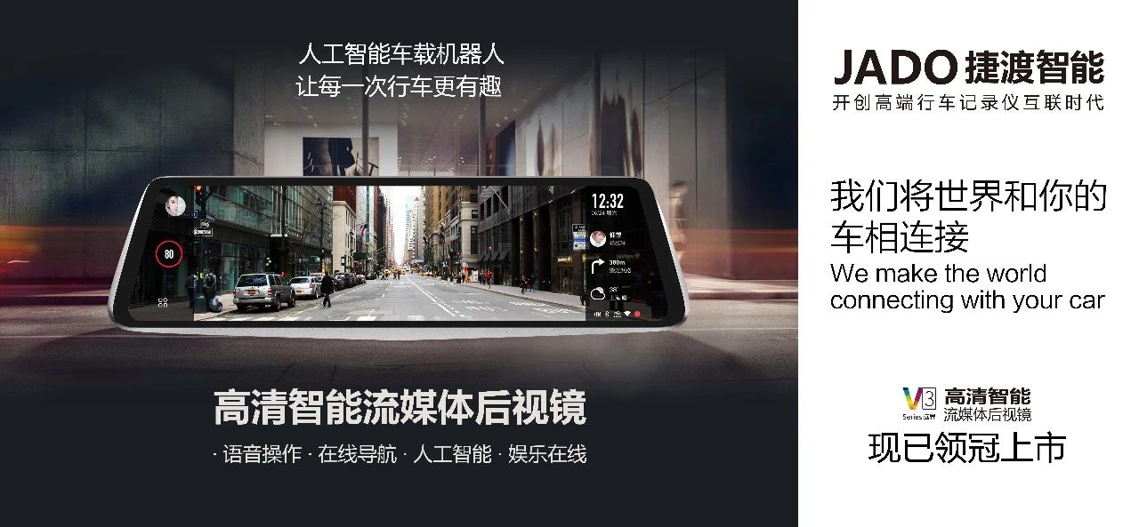 匠心產(chǎn)品,打造領(lǐng)先行業(yè)的精品,JADO捷渡智能(中國)一直在路上。自凱迪拉克CT6推出流媒體后視鏡以來,寶馬i8 Mirrorless概念車也紛紛引入類似概念,流媒體成為當(dāng)前熱點,市場上出現(xiàn)一批批流媒體汽車產(chǎn)品。但是目前流媒體后視鏡市場仍然比較混亂,行業(yè)尚沒有統(tǒng)一的標(biāo)準(zhǔn)規(guī)范。JADO捷渡智能(中國)強勢出擊,2017年率先推出了VSeries遠界3——超高清智能流媒體后視鏡,樹立了行業(yè)標(biāo)桿,定義了行業(yè)記錄儀研發(fā)制造的高端水平。