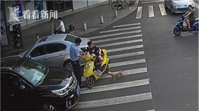 夏季天氣炎熱,狗狗也煩躁不安,易出現(xiàn)異常,且變得極具攻擊性。江蘇太倉市民張女士就遇到了這種事,不僅是把她嚇的夠嗆,還造成了交通事故。張女士騎著一輛黃色電動車疾馳而來,行駛到斑馬線的時候,一只小狗竄到了電動車前,張女士似乎非常怕狗,左躲右閃之下,駕駛電動車撞上了前面的一輛銀灰色小轎車。