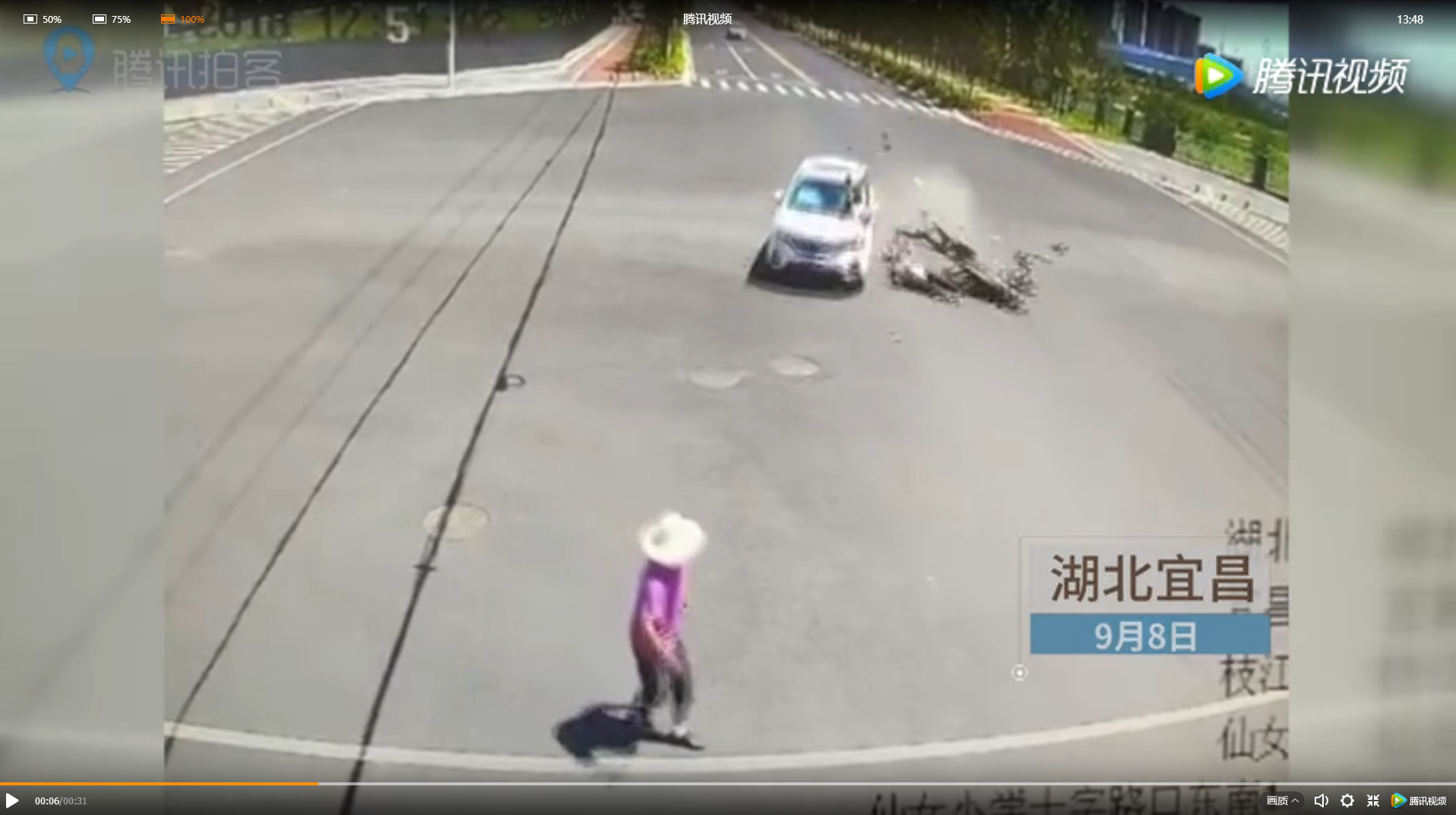 9月8日,湖北枝江一輛白色越野車(chē)在經(jīng)過(guò)十字路口時(shí)與一輛摩托車(chē)相撞,摩托上載有4人(兩大人兩小孩)瞬間被撞飛,越野車(chē)在避讓過(guò)程中又將一過(guò)馬路的行人撞翻,事故造成摩托車(chē)乘坐八歲男童當(dāng)場(chǎng)死亡,摩托車(chē)駕駛員等四人受傷。目前,受傷人員正在接受治療。