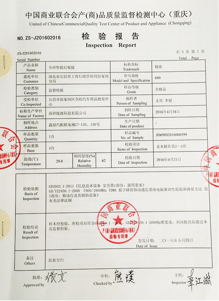 針對(duì)夏季來(lái)臨,很多機(jī)器容易出現(xiàn)死機(jī)、不正常工作,以及近期網(wǎng)上購(gòu)物出現(xiàn)質(zhì)量投訴問題,當(dāng)?shù)毓ど滩块T聯(lián)合質(zhì)檢單位進(jìn)行抽檢。經(jīng)過近兩周的樣本檢測(cè),JADO捷渡中國(guó),實(shí)力應(yīng)對(duì)考驗(yàn),成為同批參檢品牌中唯一通過質(zhì)量檢測(cè)的行車記錄儀品牌。