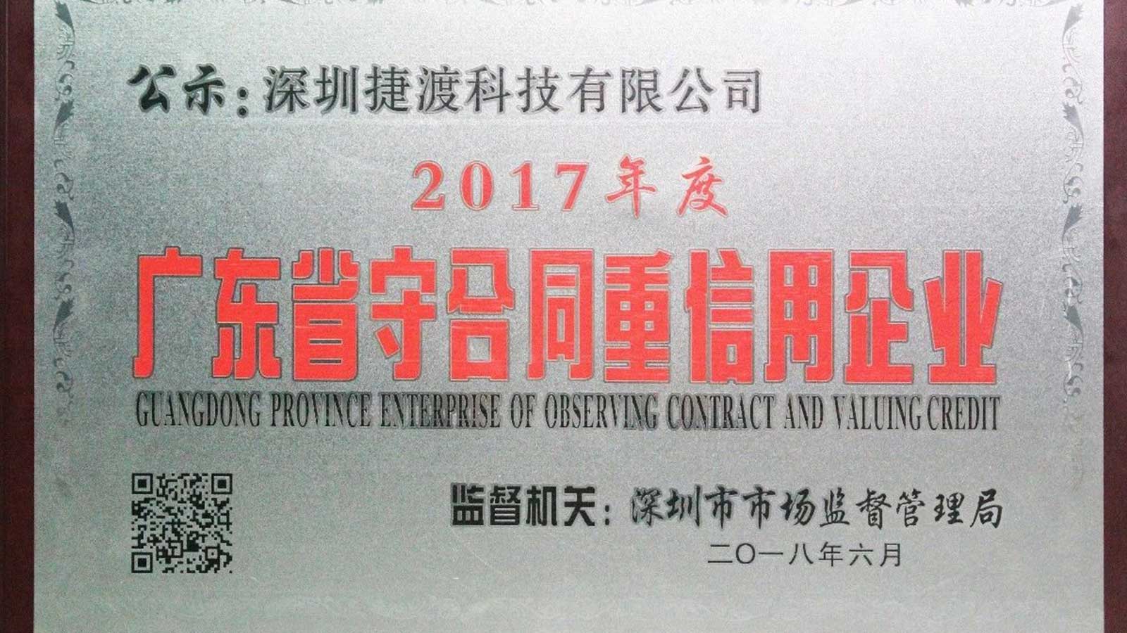【榮譽】JADO捷渡智能(中國)再次榮獲“守合同重信用企業(yè)”稱號