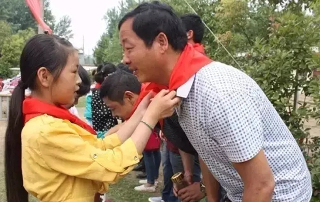 ▲孩子們?yōu)榫栀浄脚宕骷t領(lǐng)巾